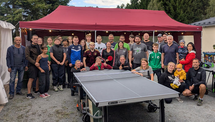 Am Samstag war in auf dem Festplatz an der „Alten Schule“ richtig was los: 30 Spielerinnen und Spieler haben sich spannende Duelle an der Platte geliefert – so viele wie noch nie! Der Gettengrüner Dorf- und Heimatverein freut sich riesig über diesen tollen Teilnehmerrekord und bedankt sich bei allen Kindern, Frauen und Männern, die mitgemacht haben. Es war ein sportlicher Tag mit guter Stimmung und viel Spaß. Ein ganz besonderer Glückwunsch geht natürlich an die Gewinnerinnen und Gewinner! Vielen Dank auch an den Deutschen Tischtennis Bund und die Sternquell Brauerei, die uns wieder großzügigerweise die Preise für die Sieger zur Verfügung stellten!